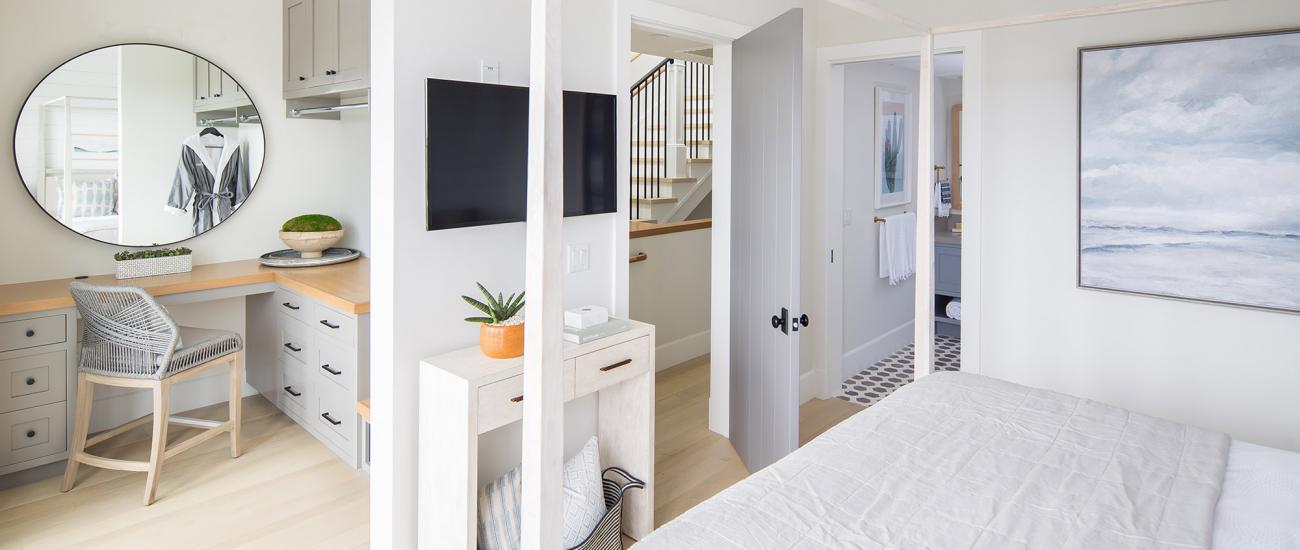 A timeless celebration of al fresco living and the art of hosting, this fluid floorplan boasts several indoor/outdoor spaces geared toward convivial gatherings—be it cocktail parties or cozy family gatherings. Taking cues from its nautical origins, the spacious Newport Beach hotel retreat is adorned in hues of blue but warmly accented with wooden tones.